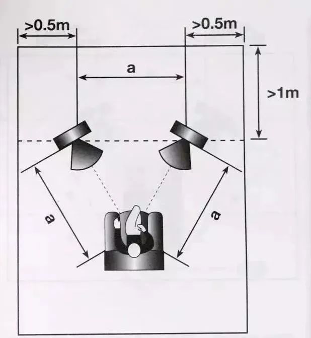 Ez a módszer minden méretű helyiséghez alkalmas. A lényeg az, hogy egy egyenlő oldalú háromszög elrendezést hozzunk létre, amely a hangszórókat és a hallgatási pozíciókat foglalja magában. Először is, a hangszóróknak legalább 1 méterre kell lenniük a hátsó faltól és 0,5 méterre az oldalsó falaktól. Másodszor, a két hangszórót és a hallgatási pontot összekötő vonal egyenlő oldalú háromszöget alkot, és a hangszórókat legalább 45°-os szögben befelé kell dönteni.