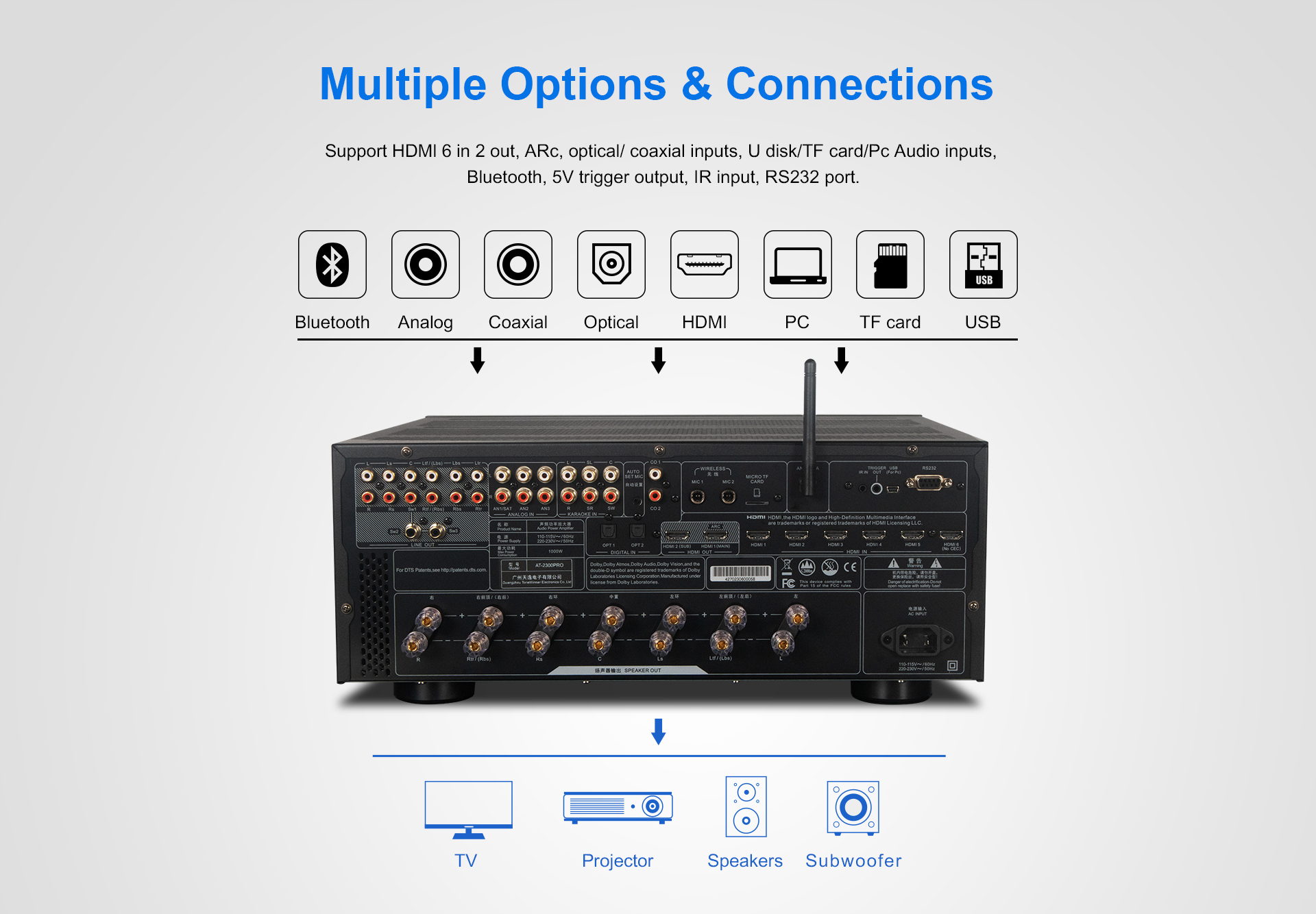 Az AT-2300PRO egy Dolby Atmos/DTS:X 7.1 AV vevő , amely intelligens dinamikus energiagazdálkodással és H osztályú áramkörrel rendelkezik, valós idejű, precíz energiaelosztást biztosítva többcsatornás forgatókönyvekhez.