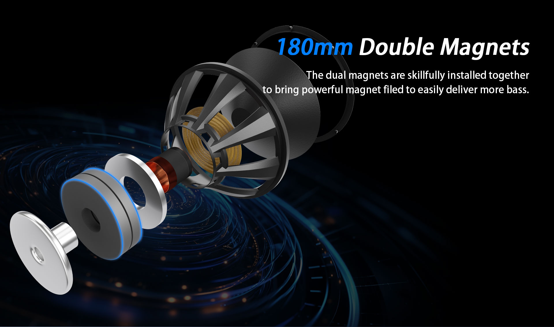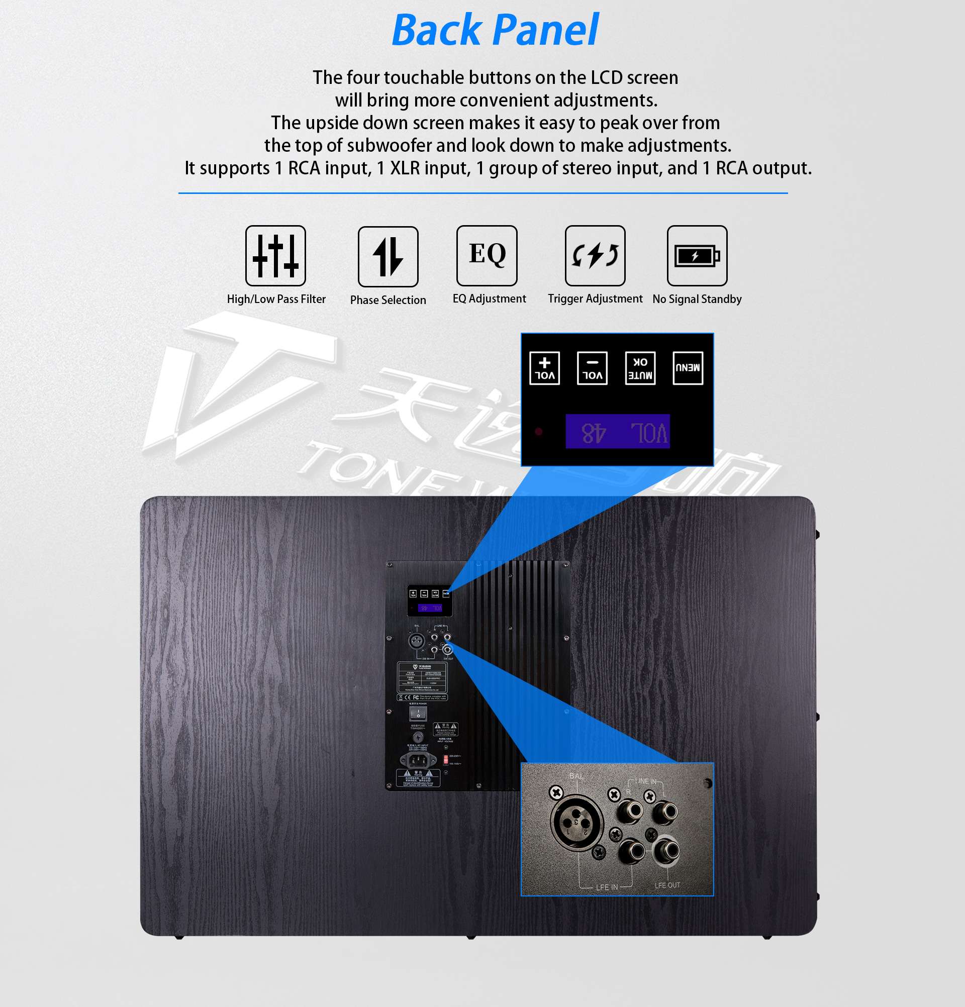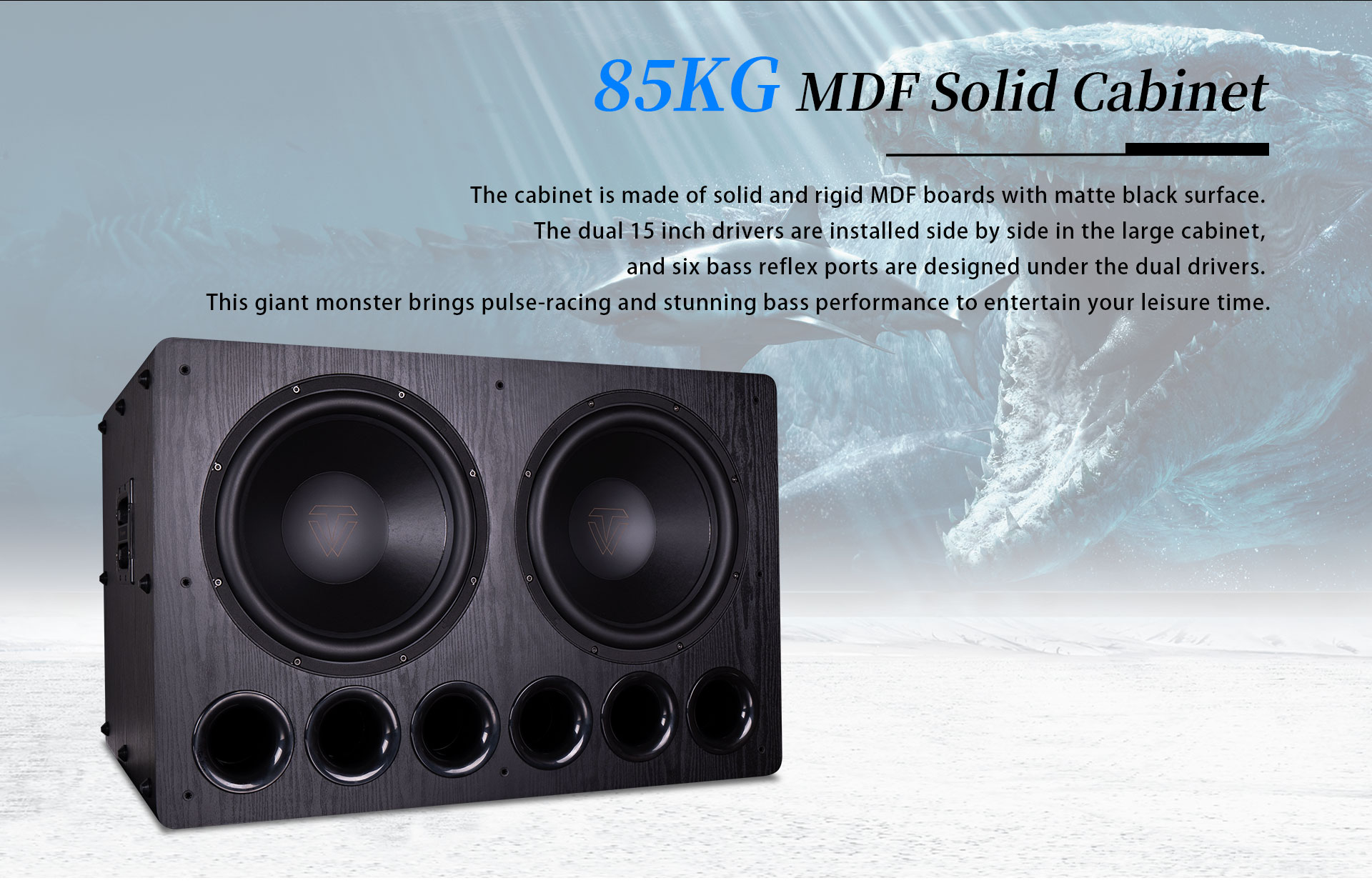 A mélynyomó 1500 W RMS és 8000 W csúcsteljesítményt biztosít 3 ohmon, D osztályú hatásfokkal. Viharos hangzással tölti meg a szobát, és fokozza a felvillanyozott élményt filmnézés, zenehallgatás, éneklés vagy játék közben.