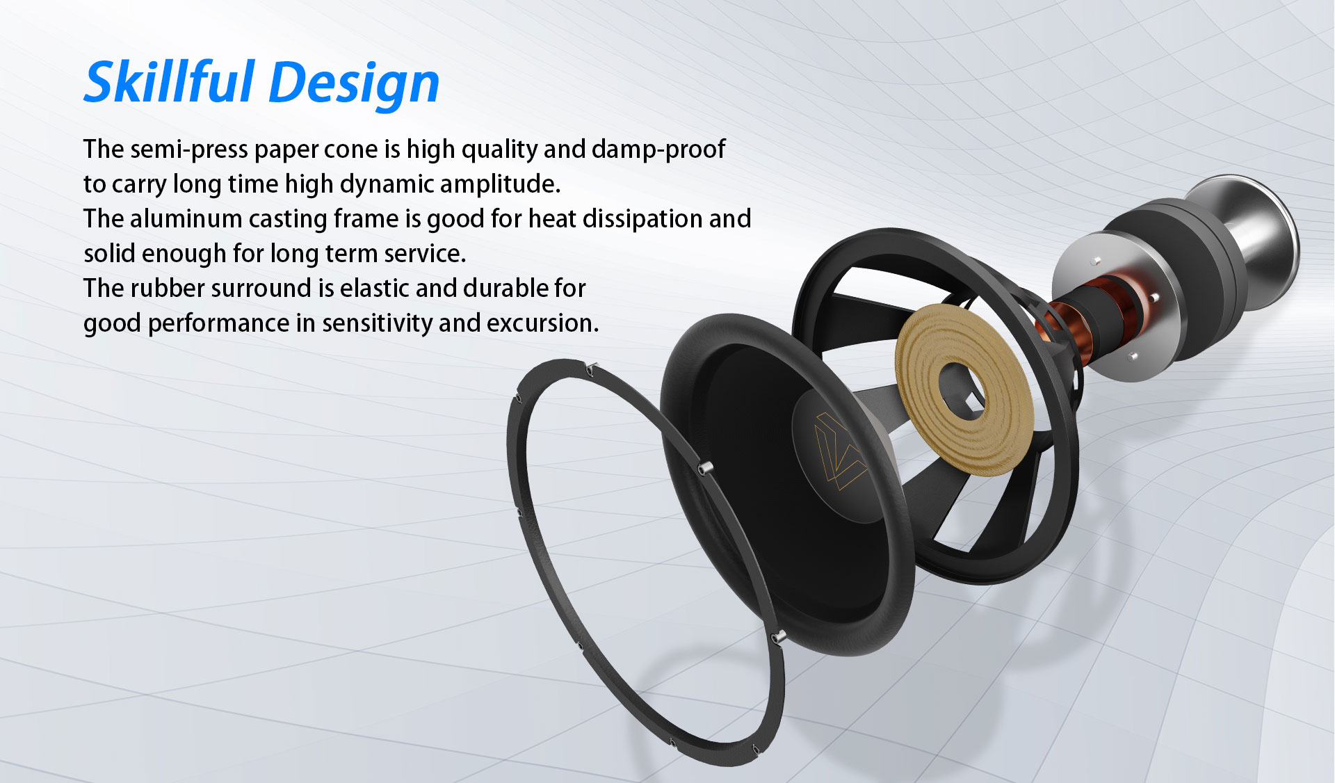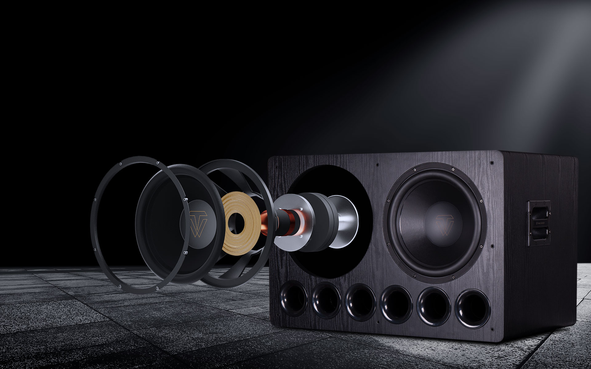 A meghajtók mérete 15 hüvelyk, így nagy amplitúdót, nagy dinamikát és alacsony kilengést biztosítanak.