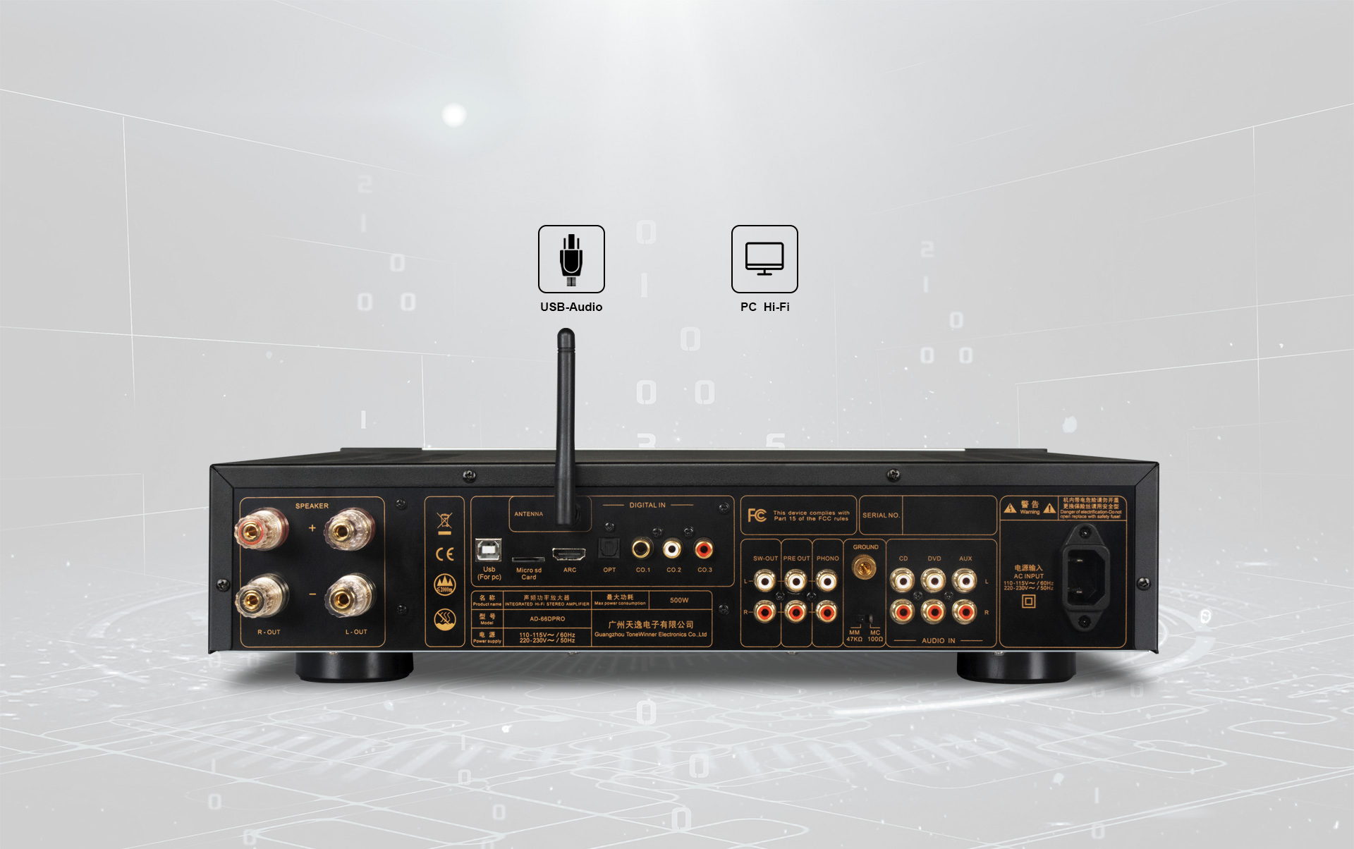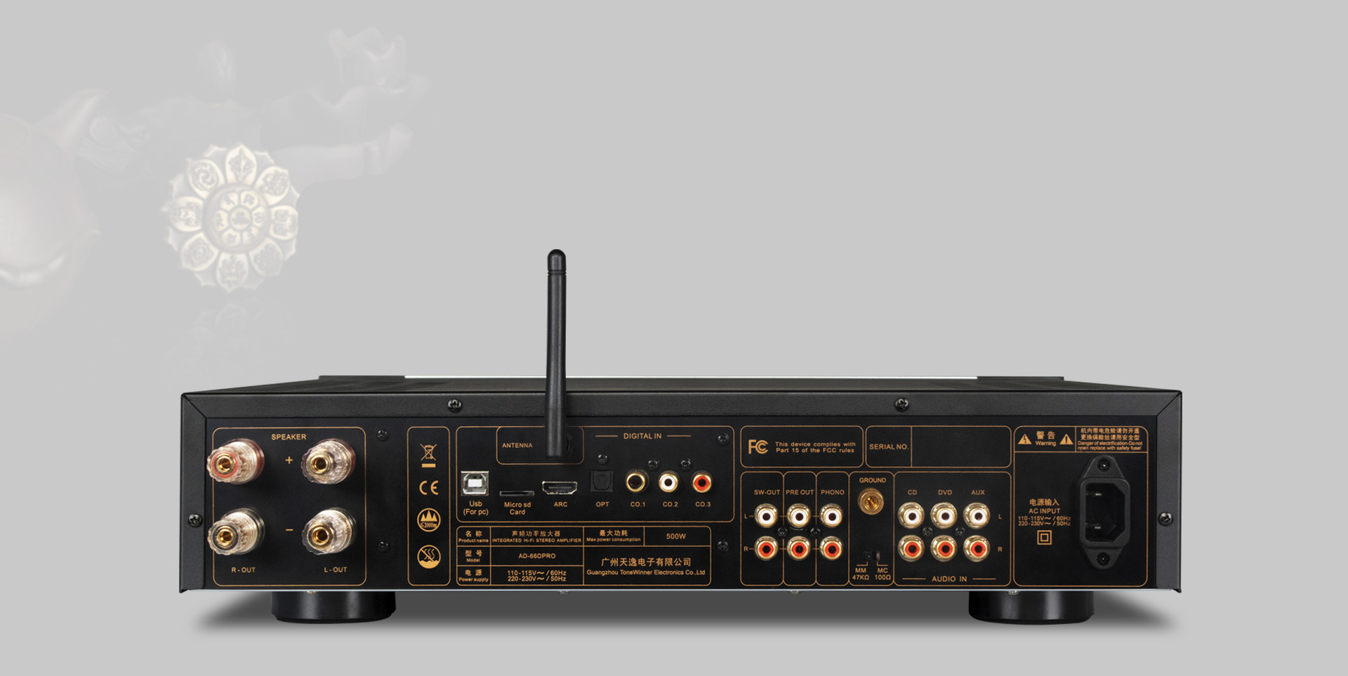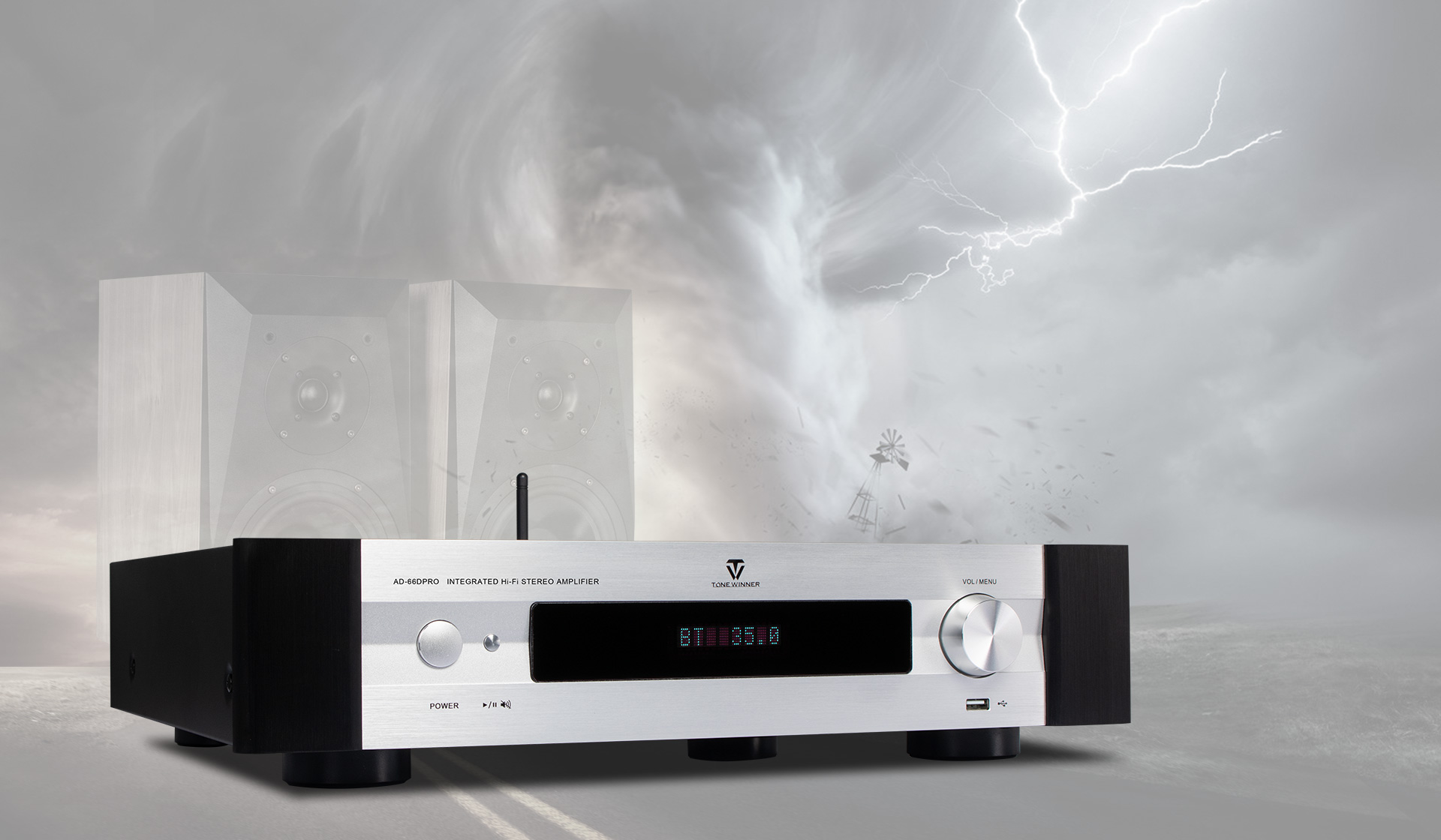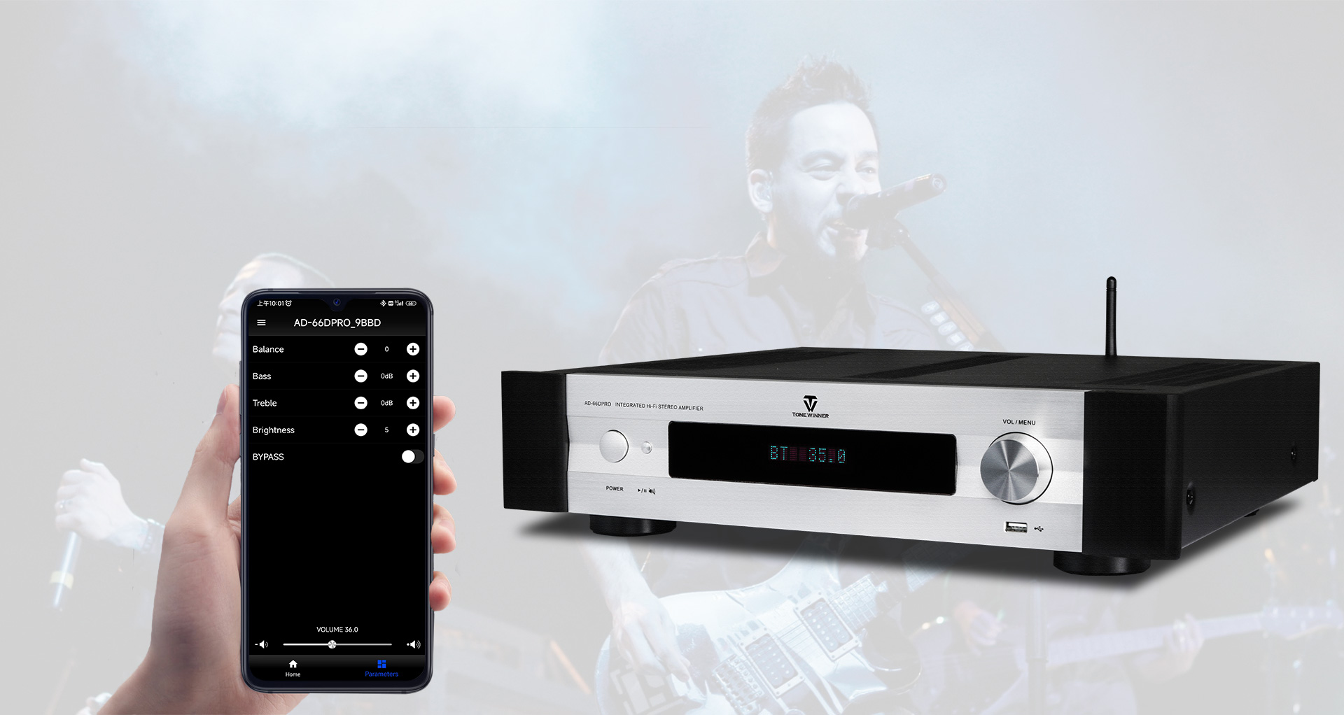 Az AD-66DPRO az AD-66D továbbfejlesztett változata. Új MM/MC phono interfésszel rendelkezik, a Bluetooth verzió 5.0-ra frissült, és új mobilalkalmazással is fel van szerelve. Az AD-66DPRO megtartotta a legtöbb előnyét, és az új funkciókkal is bővült, így egy ajánlott belépő szintű Hi-Fi erősítő.