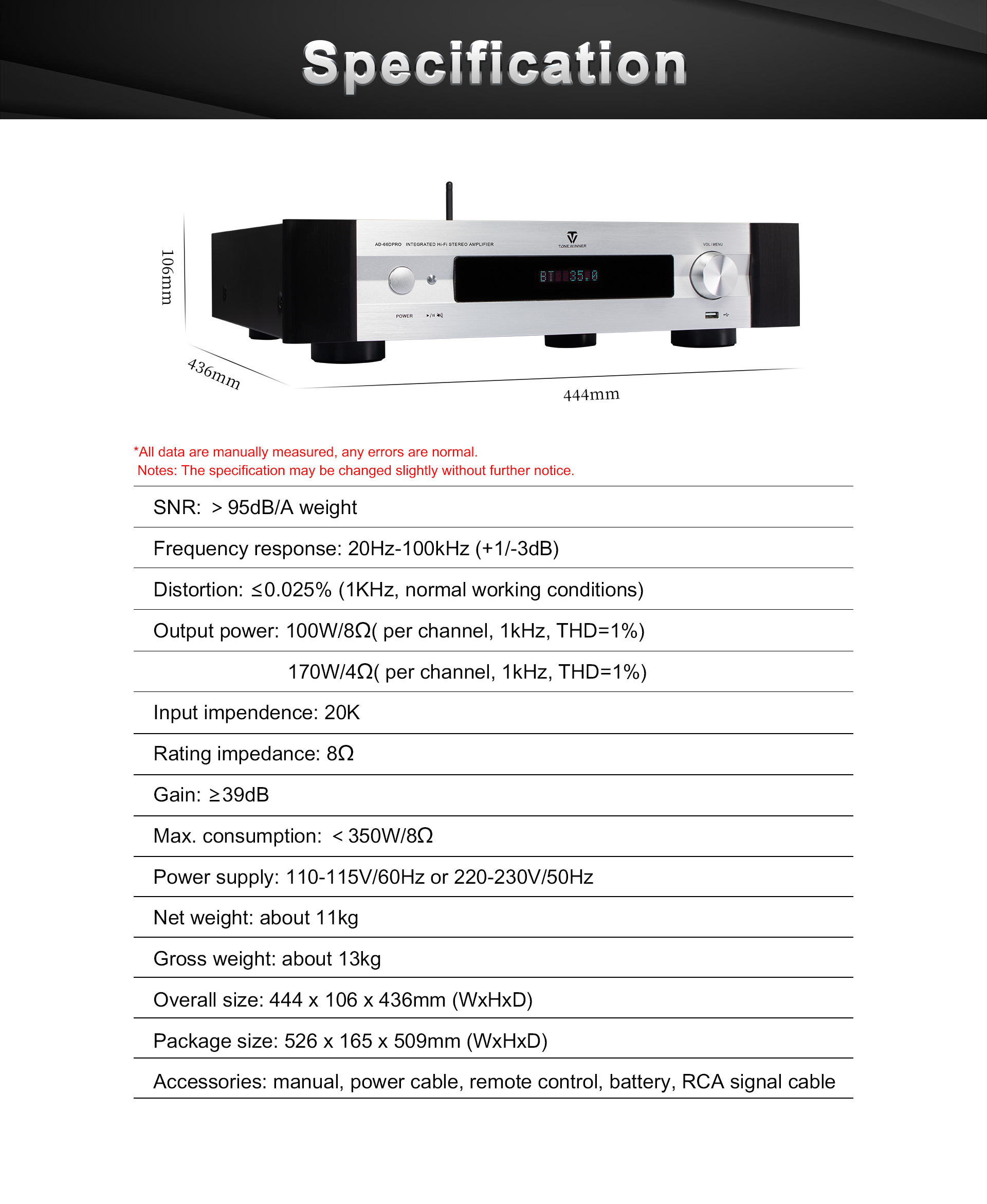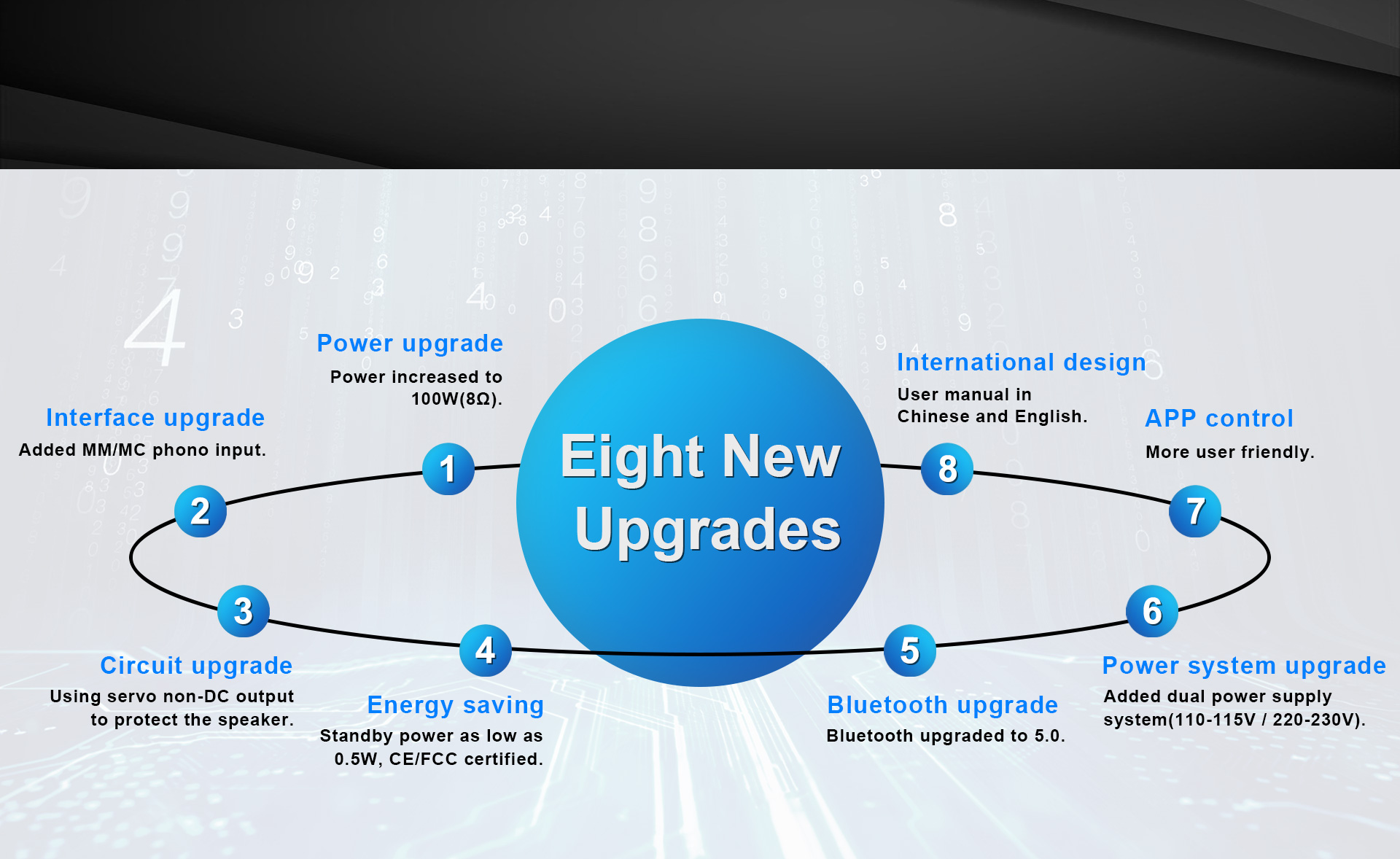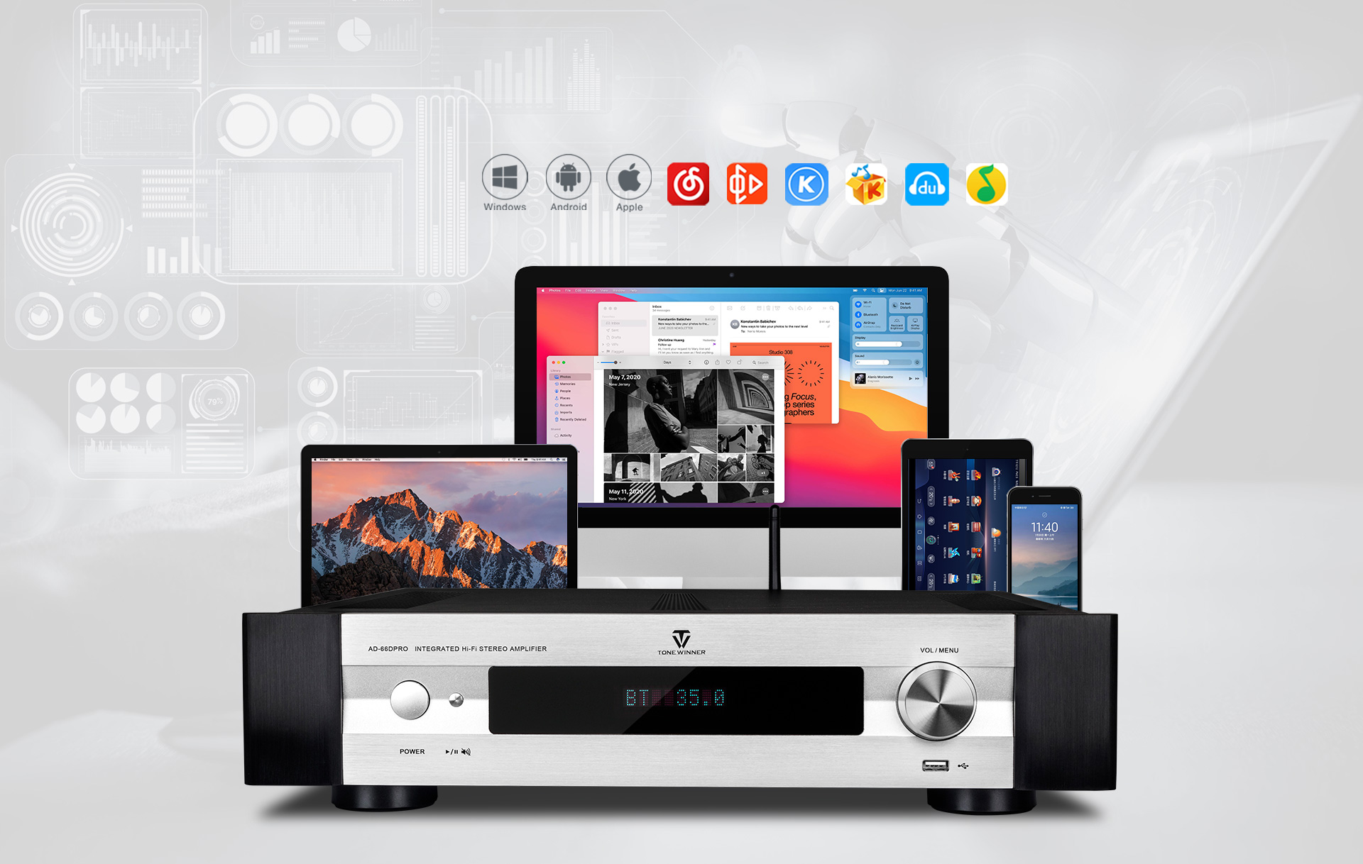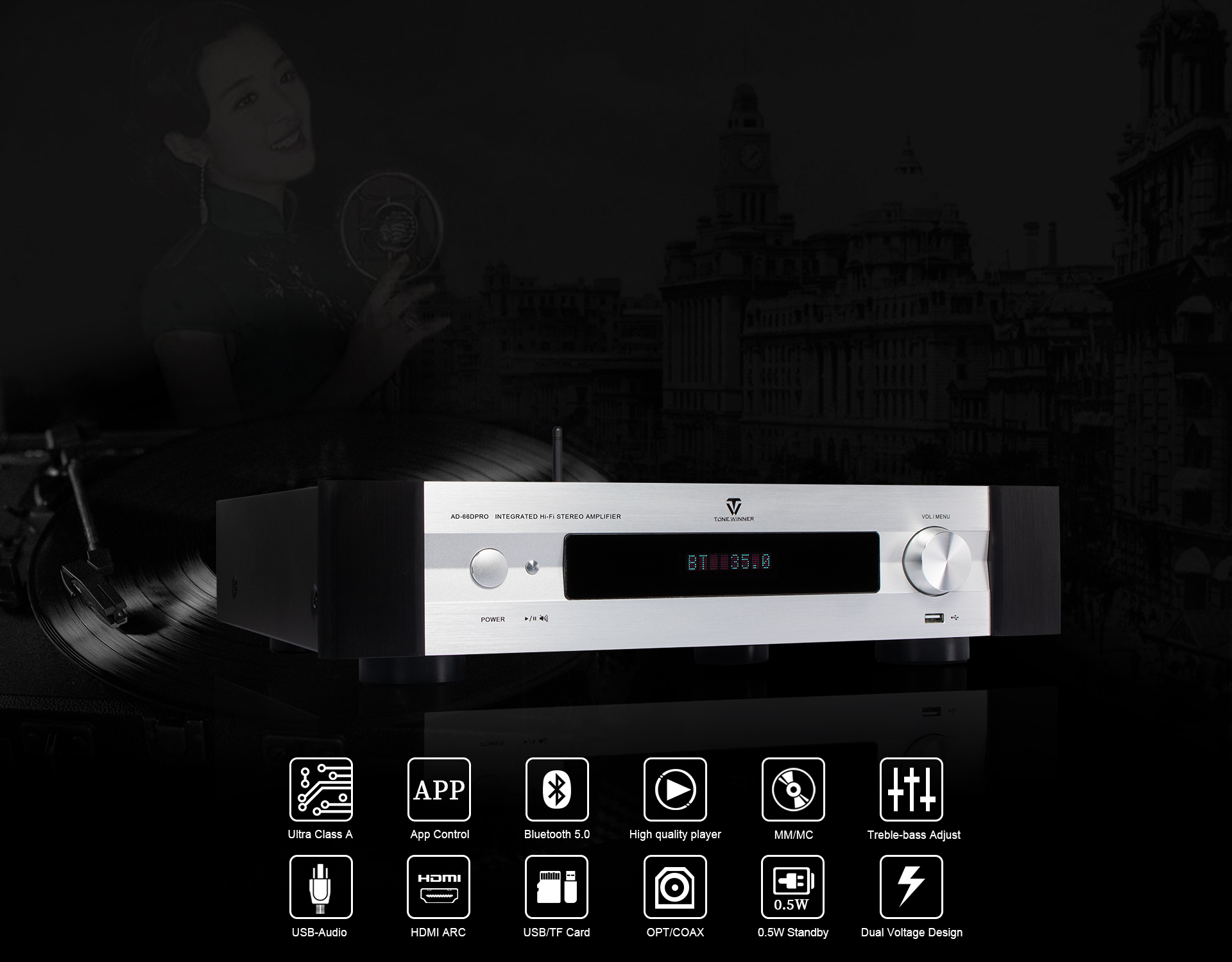 Az AD-66DPRO az AD-66D továbbfejlesztett változata. Új MM/MC phono interfésszel rendelkezik, a Bluetooth verzió 5.0-ra frissült, és új mobilalkalmazással is fel van szerelve. Az AD-66DPRO megtartotta a legtöbb előnyét, és az új funkciókkal is bővült, így egy ajánlott belépő szintű Hi-Fi erősítő.
