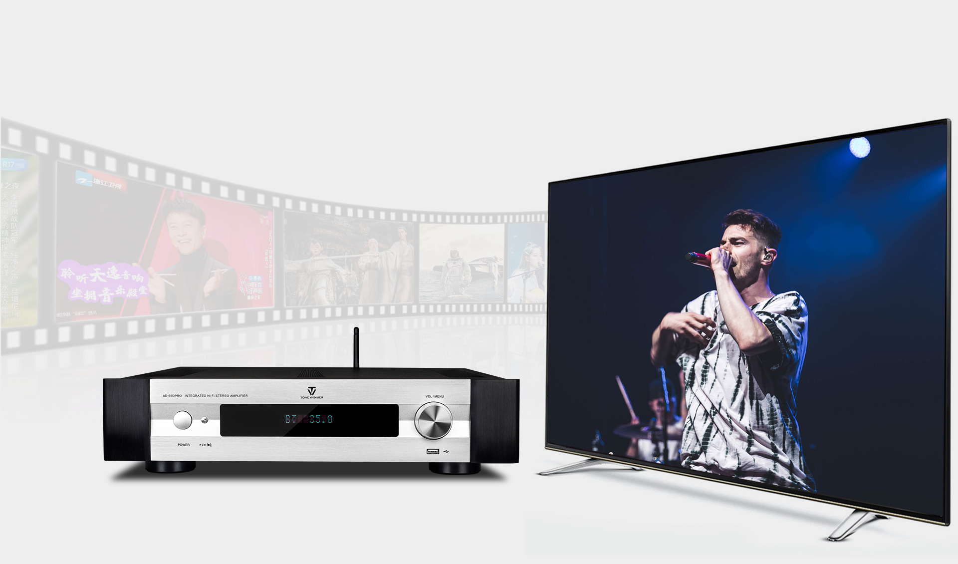 Egyszerűen csatlakoztassa az AD-66DPRO készüléket a TV-hez egy HDMI 2.0+ kábellel, hogy magával ragadó audiovizuális szinkronizációt érjen el.