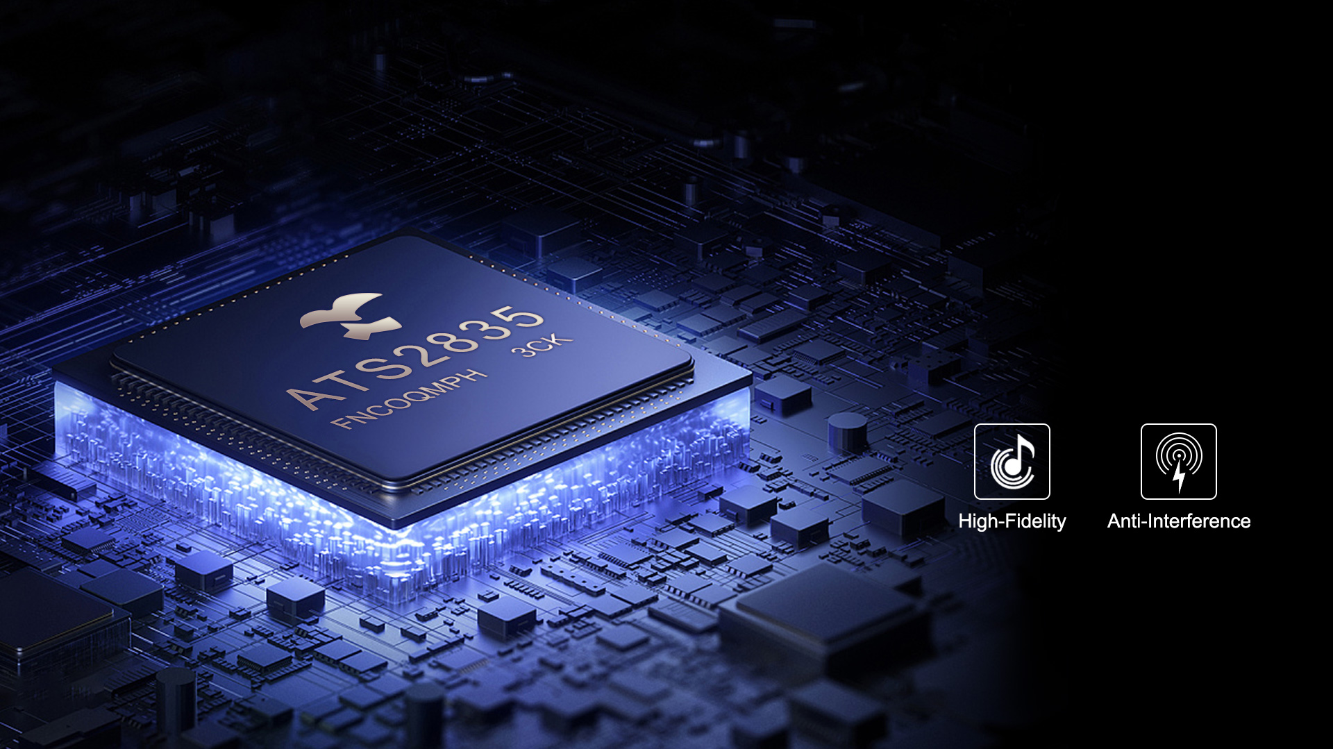 A magasan integrált ATS2835 Bluetooth audiomegoldást ötletesen beépítették az áramköri tervbe, nagy sebességű és stabil vezeték nélküli átvitelt biztosítva.