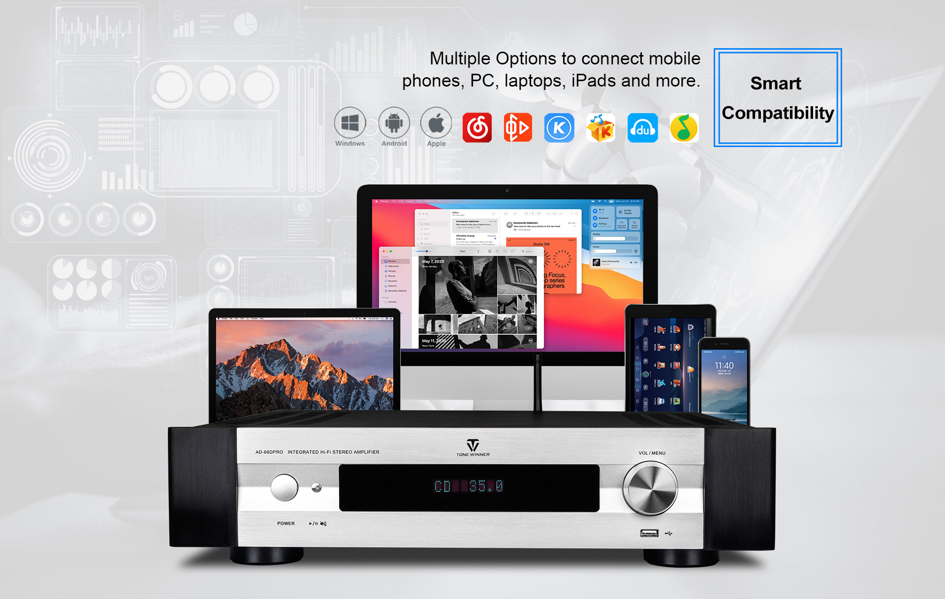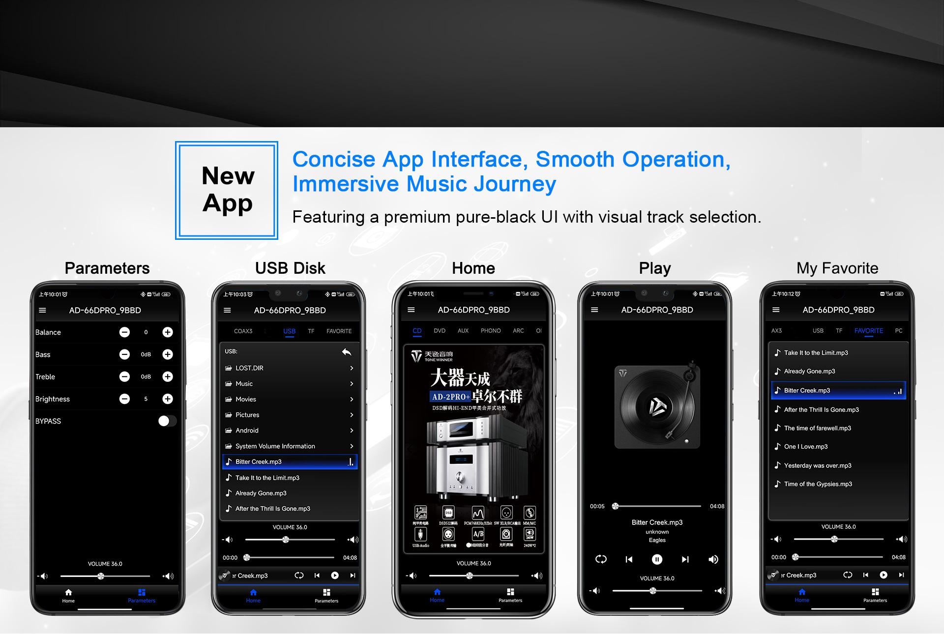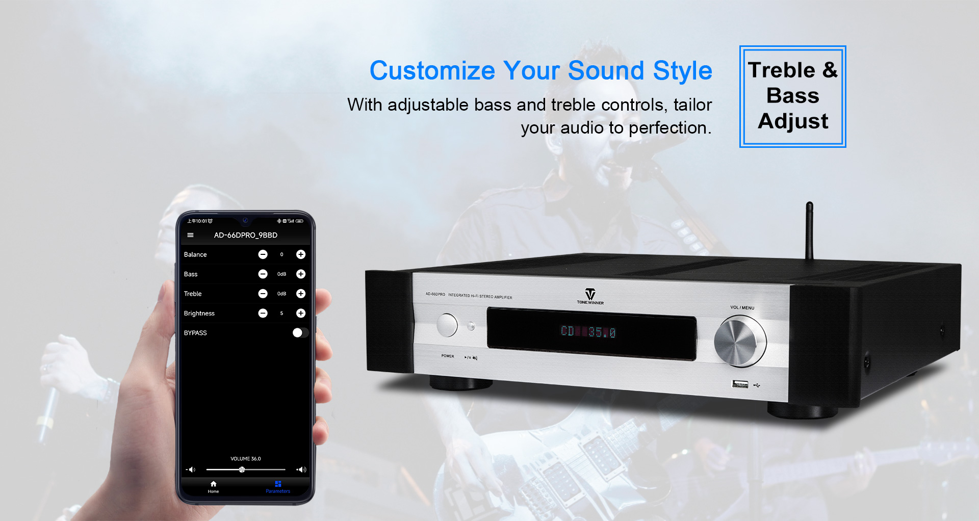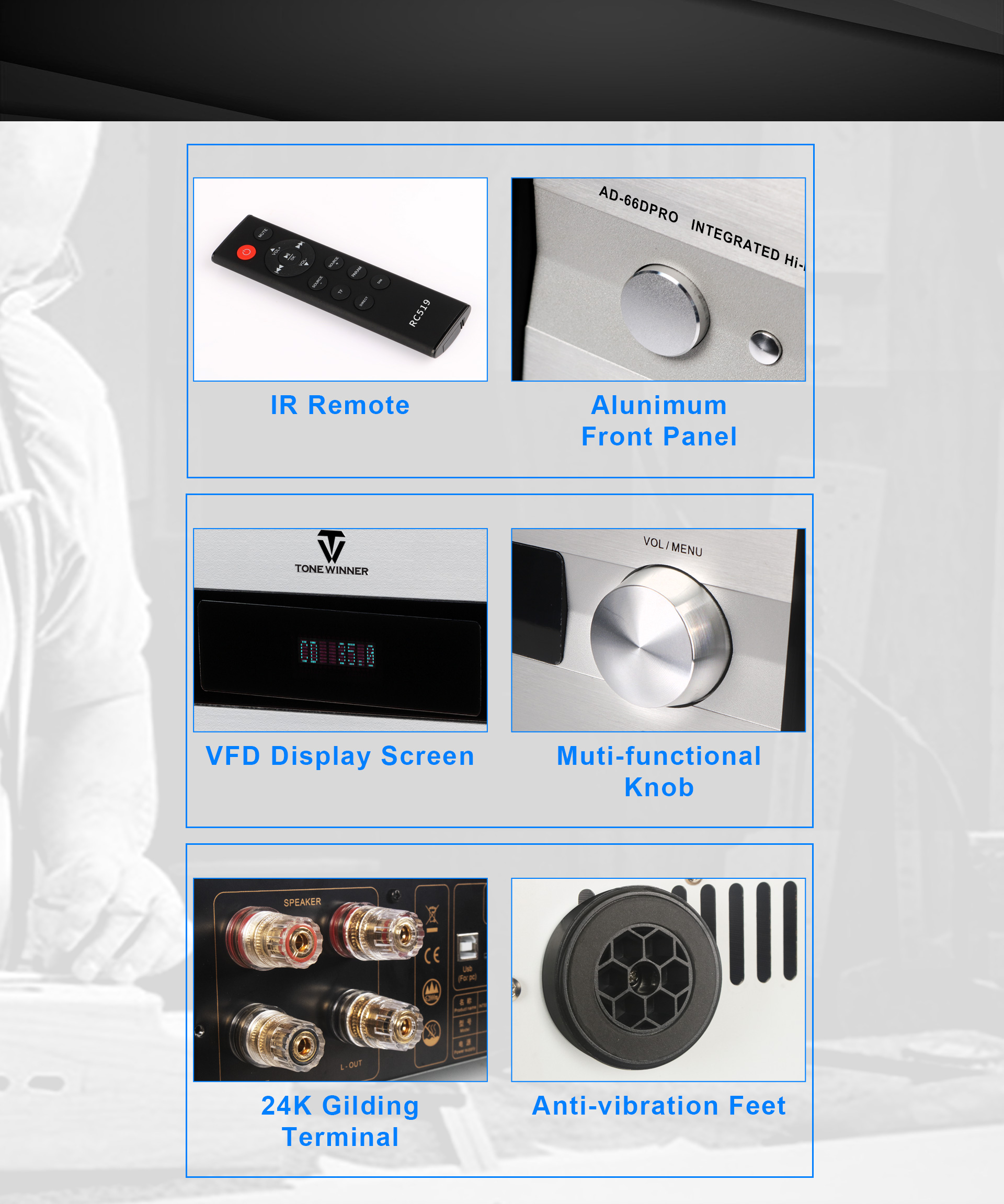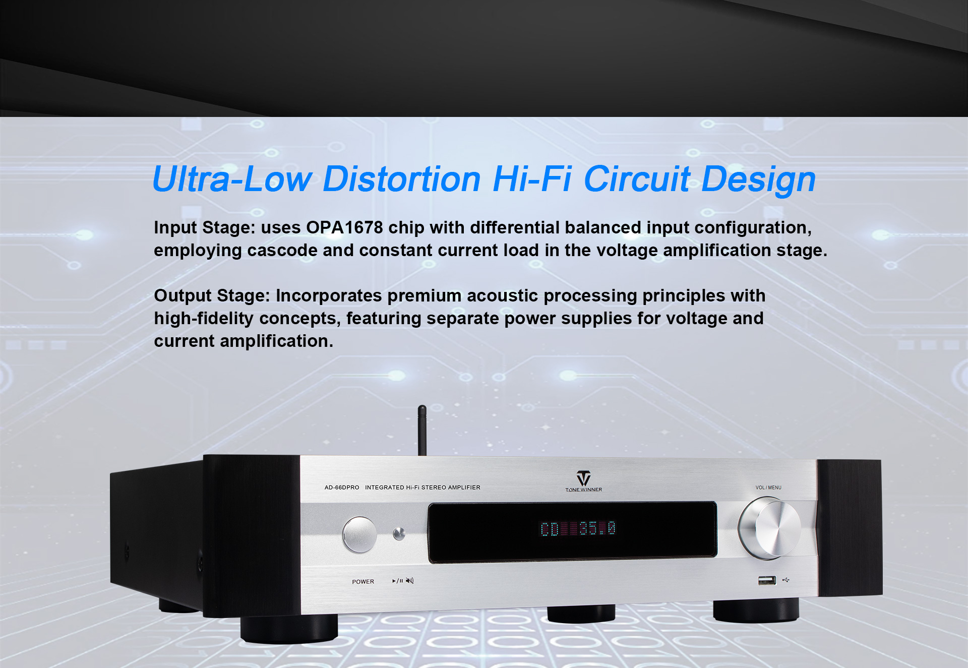 Az AD-66DPRO az AD-66D továbbfejlesztett változata. Új MM/MC phono interfésszel rendelkezik, és új mobilalkalmazással is fel van szerelve. Az AD-66DPRO megtartotta a legtöbb előnyét, és az új funkciókkal is bővült, így egy ajánlott belépő szintű Hi-Fi erősítő.