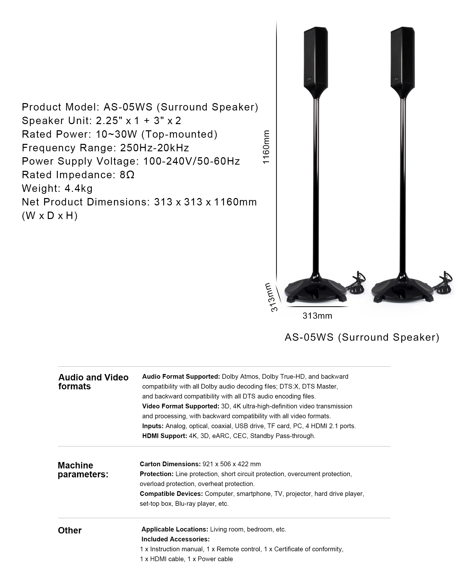 AS-05WS (hátsó surround hangszóró) |
