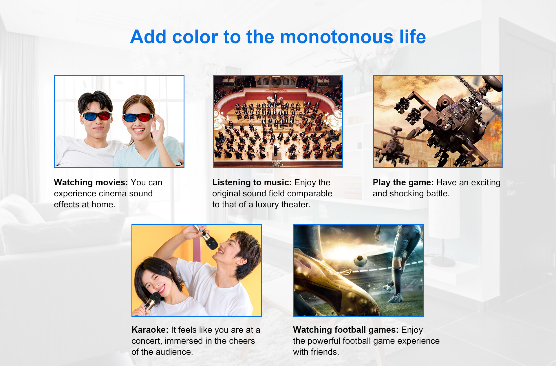 A hagyományos sztereó vagy többcsatornás hangsávokban található térbeli pozícionálási jelek azonosításával és professzionális DSP algoritmusok használatával magával ragadó 3D hanghatás jön létre.