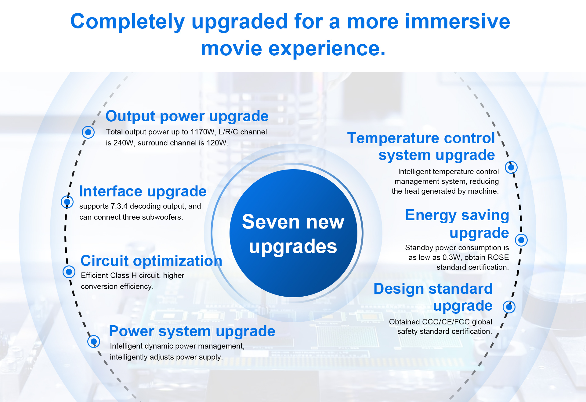 Támogatja a Dolby Atmos és a DTS:X magával ragadó hangeffekteket, a hétköznapi pillanatokat rendkívüli látványvilággá varázsolja, lélegzetelállító zenét és karaktereket mutat be.