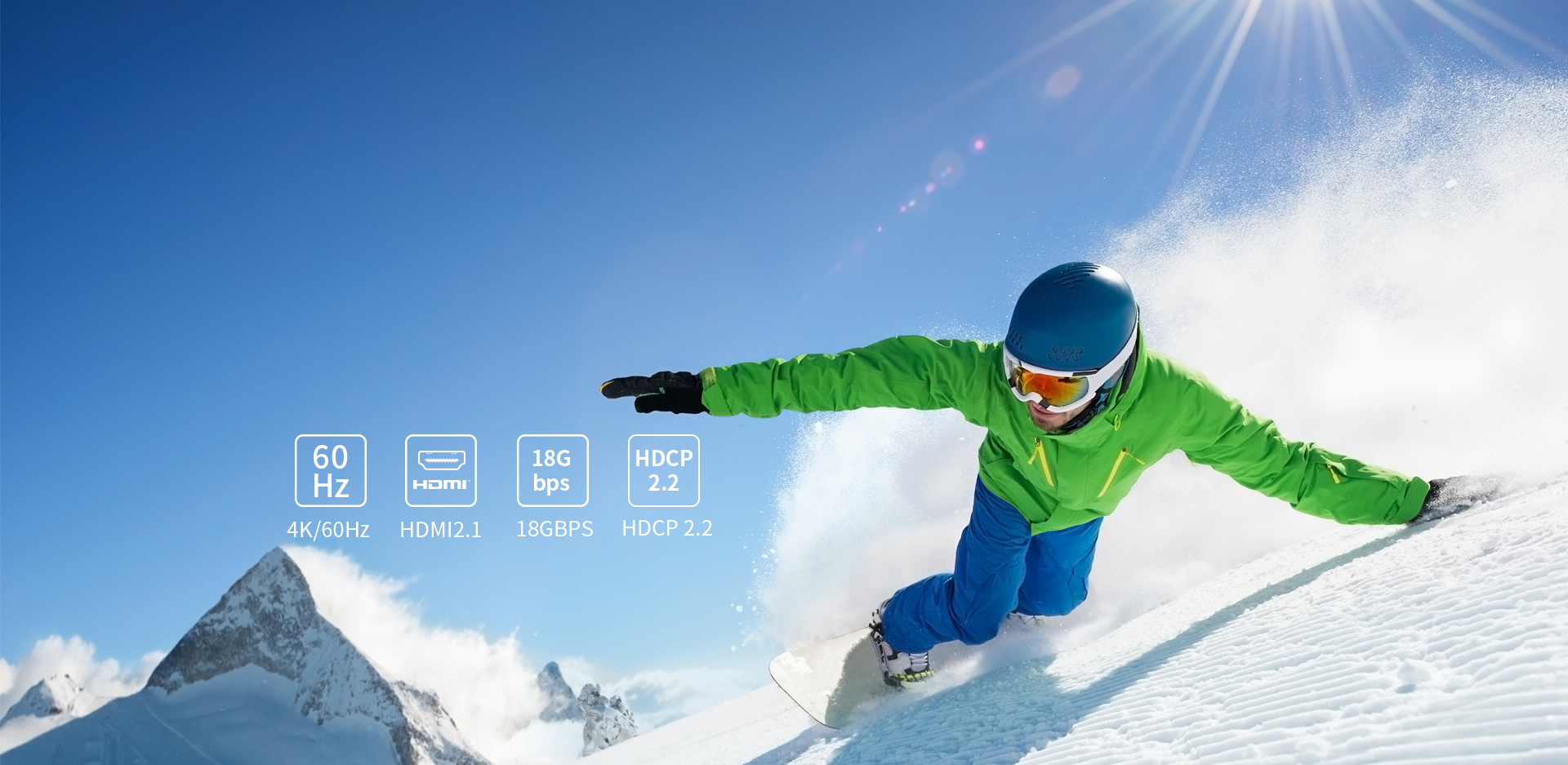 Akár 18 GB sávszélesség, 3840*2160 4K nagyfelbontású videó pixel, ami négyszerese a hagyományos 1080P teljes nagyfelbontású videókénak, az RGB4:4:4 technológiának köszönhetően a kép kontrasztja és fényereje jelentősen javul, jobban kiaknázva a hang- és képminőség potenciálját filmekben és játékokban.
