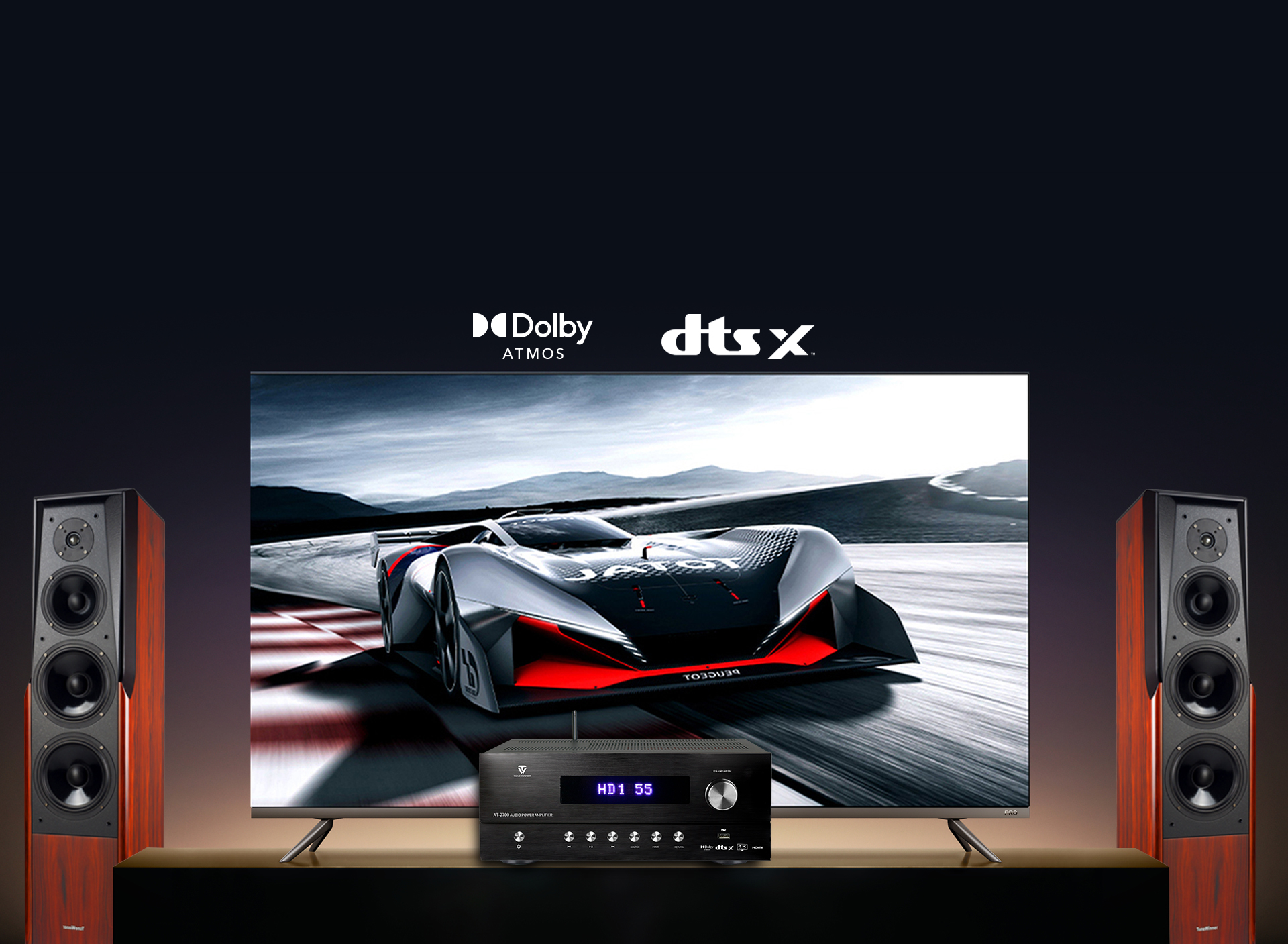 Támogatja a többcsatornás hangszóró-elrendezéseket, valósághű 3D hangteret és -tartományt hoz létre, kifejező, szimfóniaszerű hatást keltve az Ön élvezetében.