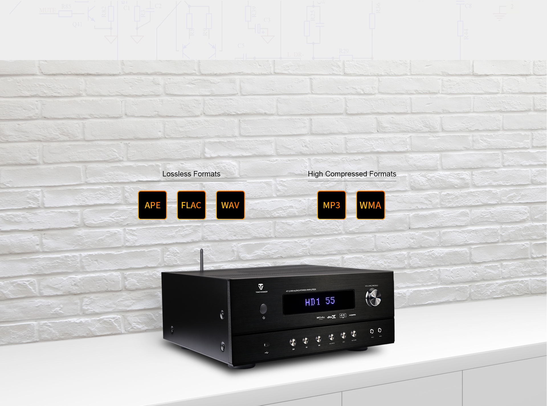 Támogatja a helyi lejátszást 128 GB-os USB-meghajtókról és TF-kártyákról, kompatibilis a mainstream veszteségmentes zenei formátumokkal, mint például az APE, FLAC és WAV, valamint a tömörített zenei formátumokkal, mint az MP3 és a WMA, visszaadva a zene valódi szépségét.