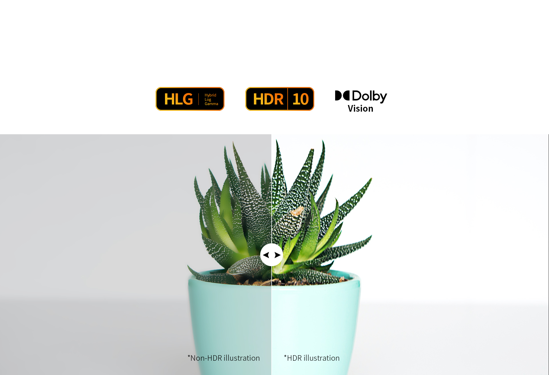 Kompatibilis a HLG, HDR10 és Dolby Vision technológiákkal, tiszta részleteket jelenít meg mind a világos, mind a sötét területeken, lélegzetelállító fényerővel, kontraszttal és színnel átalakítva a mozinézési élményt a tévében és a moziban.