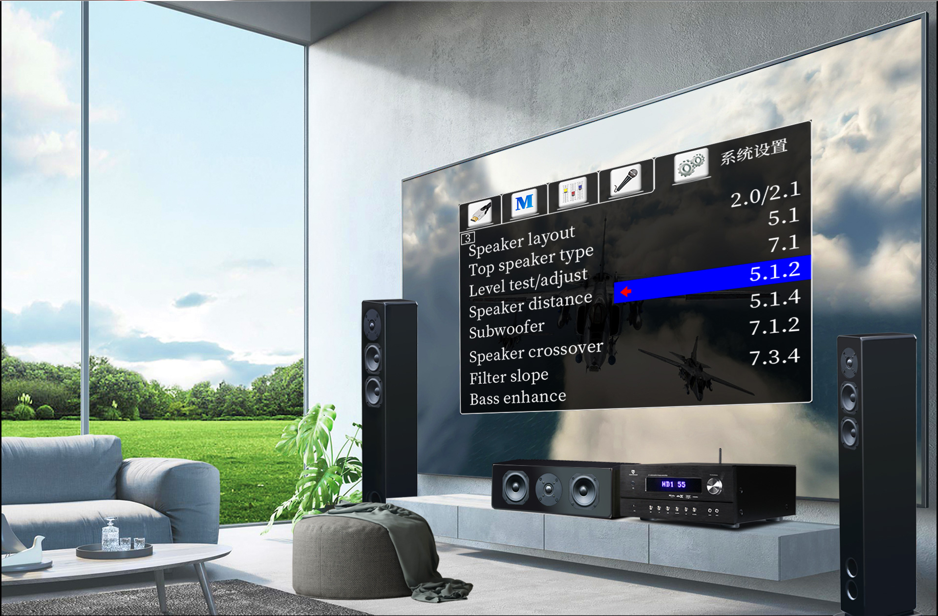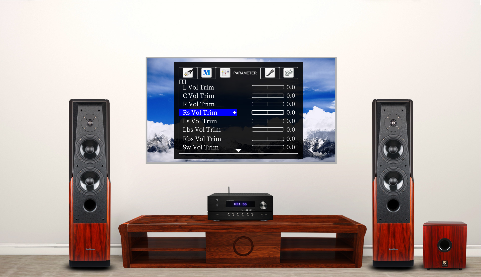 Együttesen végzik el a hanghatás beállítását, a hangszóró frekvencia-átviteli görbéjének beállítását és a hangszínkorrekciót, hogy biztosítsák a hangtér elválasztását és a térhatású hang folytonosságát. Vevő