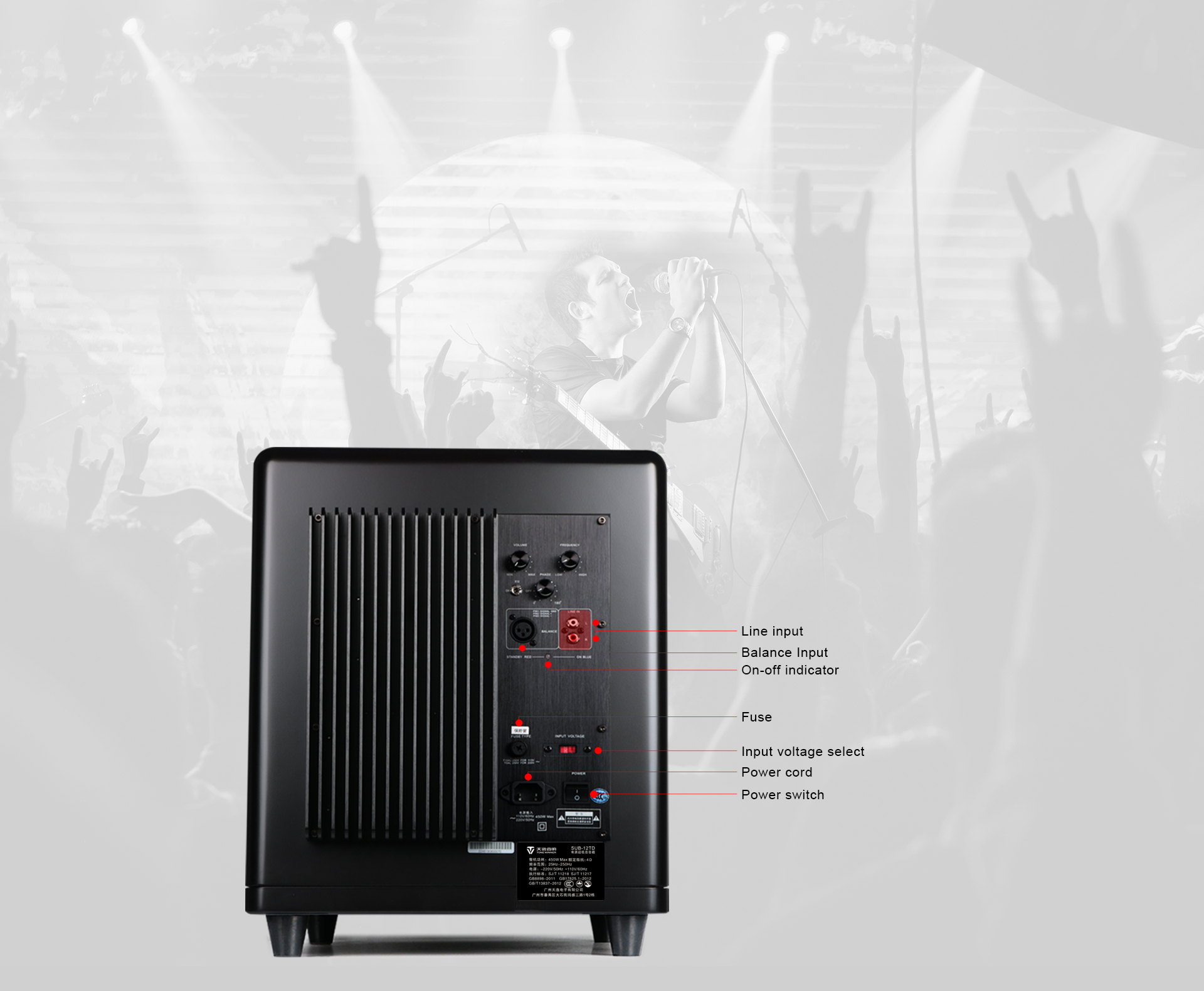A SUB-12TD egy 12 hüvelykes, aktív mélynyomó mélyhangsugárzó, az EQ, a fázis és a frekvencia beállításával a mélyhangminőség személyes ízlése érdekében. Támogatja a vonal bemeneteket, a balansz bemenetet és a 110V/220V tápfeszültséget. Stabil és erőteljes alacsony frekvenciájú hangzást ad 300 W-os támogatással és nagybőgő reflex kialakítással.