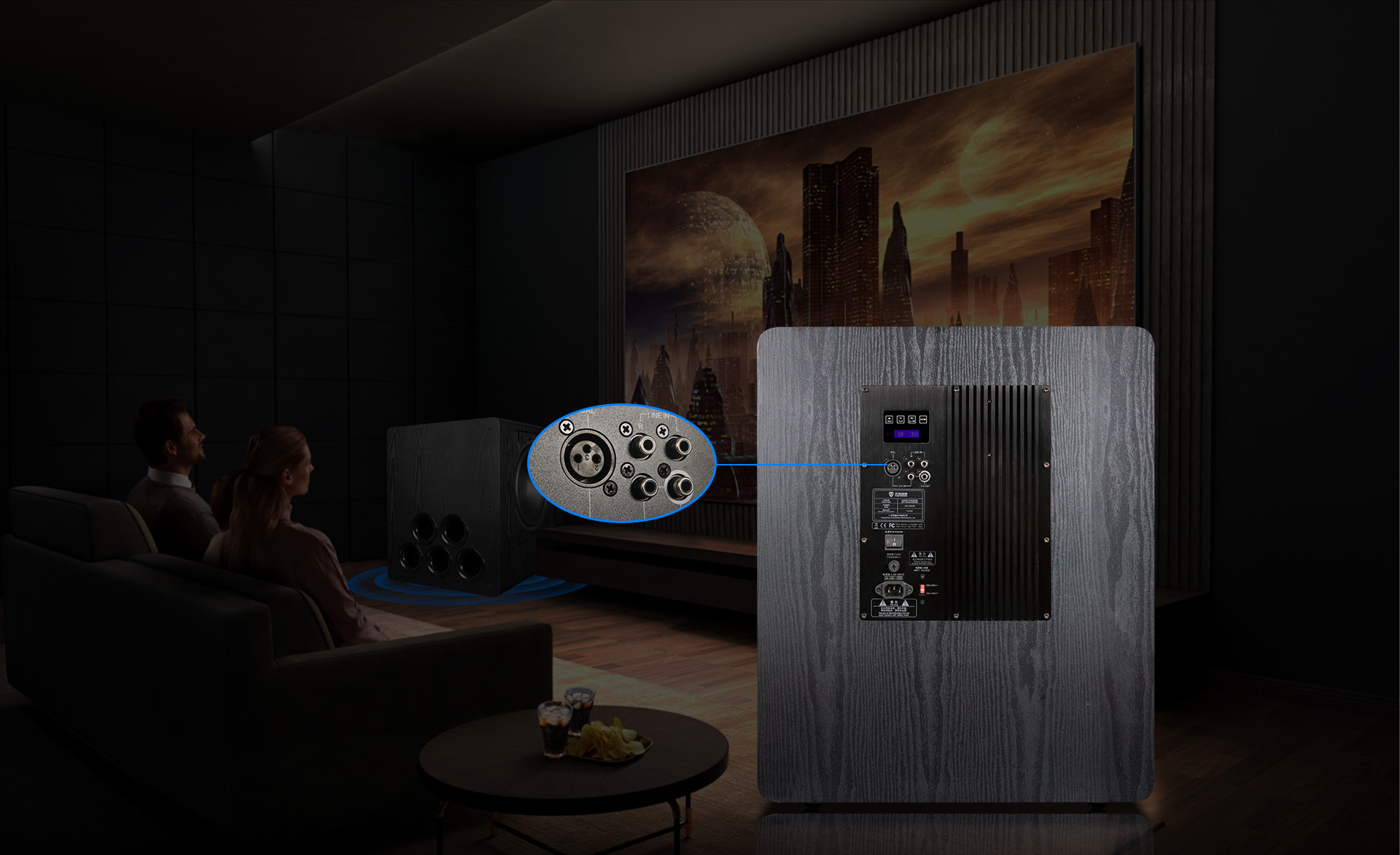 XLR és analóg bemeneti csatlakozókkal, valamint egy mélynyomó kimeneti csatlakozóval rendelkezik a különböző lehetőségek kielégítésére.