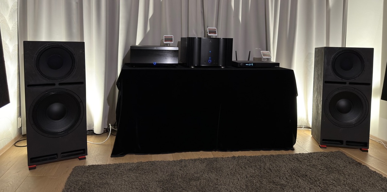 A bemutató az AD-1PA+ és az AD-8300PA erősítőkre összpontosított, amelyeket egy háromutas, teljes tartományú hangszórórendszerrel párosítottak, miniDSP SHD digitális hangváltóval. Az AD-1PA+ egy 12 hüvelykes közép-mélysugárzót és egy koaxiális közép-magassugárzót hajtott, míg az AD-8300PA egy 15 hüvelykes mélysugárzót, így egy professzionális rendszert alkotva tiszta, réteges hangzással és erőteljes dinamikával.