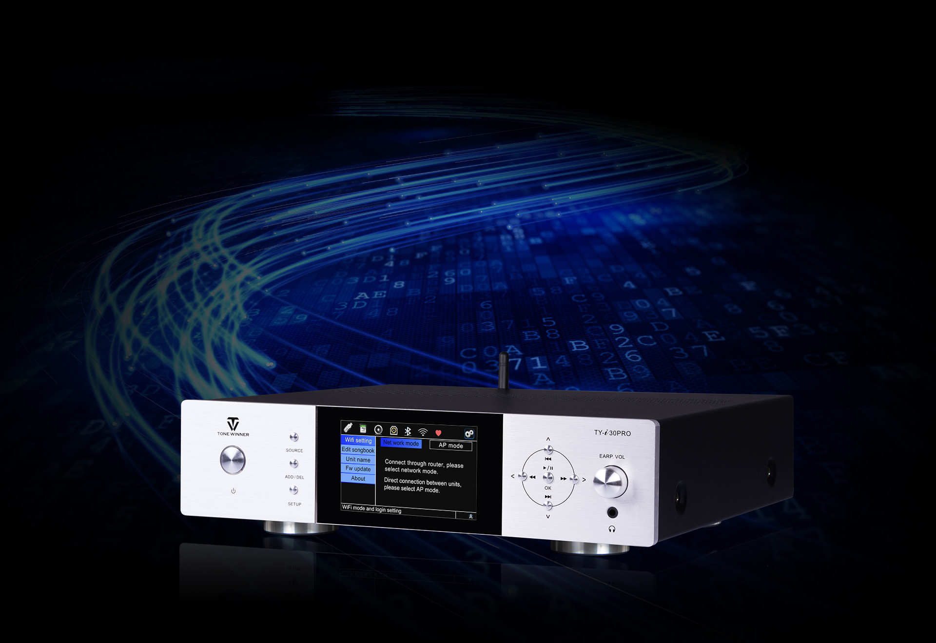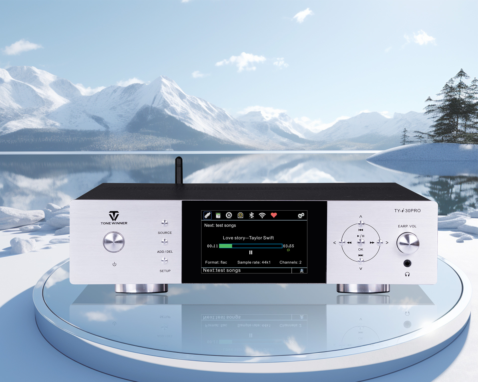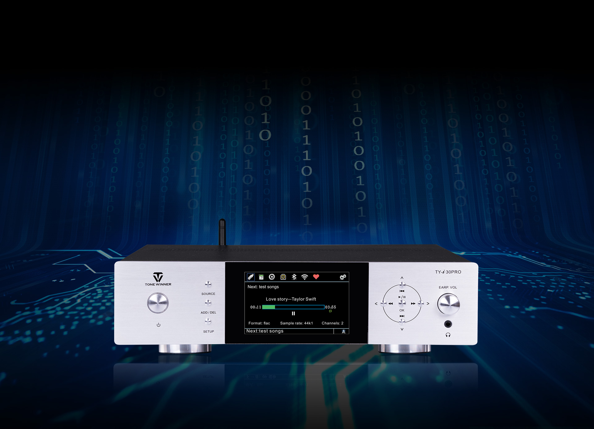 A TY-i30PRO egy új, multifunkciós médialejátszó, amelyet a ToneWinner dobott piacra. DLNA, AIRPLAY vagy Bluetooth kapcsolaton keresztül képes fogadni mobiltelefonról, iPadről, notebookról és más eszközökről érkező dalokat. A TY-i30PRO támogatja a 2 TB-os mobil merevlemez, TF-kártyák és USB flash meghajtók helyi lejátszását, támogatja a veszteségmentes zenei formátumokat, például a WAV/FLAC és az APE-t, előlapi 3,5 mm-es fejhallgató-csatlakozóval rendelkezik, és támogatja az optikai, koaxiális, 192 kHz/24 bites PCM digitális stream formátumú bemenetet és kimenetet.