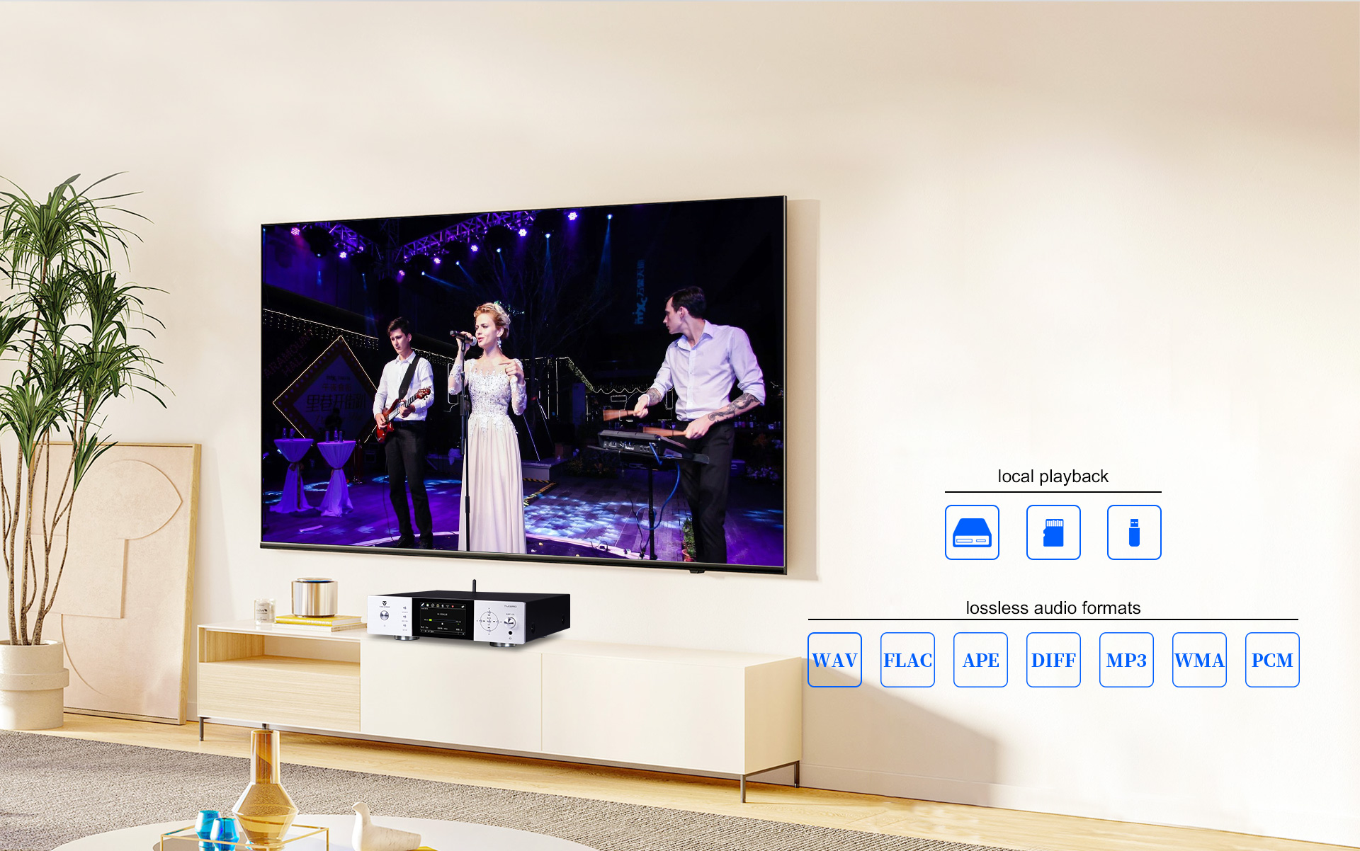 T A digitális audio vevő chip a CS8416 chipet használja, amely támogatja a 192 kHz/24 bites digitális audio stream bemenetet a gazdagabb és szebb zenei részletek megőrzése és a zenei jelenetek reprodukálása érdekében. .