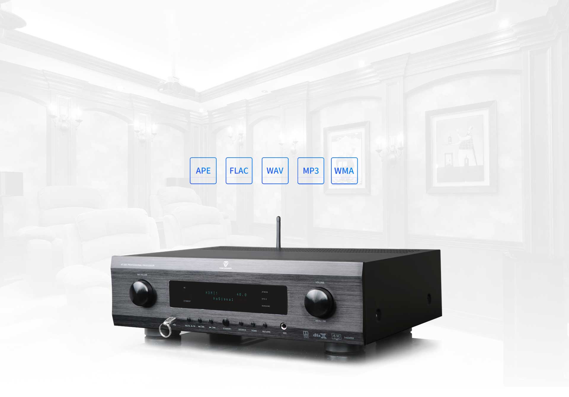 Az AT-200 egy professzionális házimozi és karaoke integrált audio-video dekóder 7.1.4-es beállításhoz. Ez előerősítő mélynyomó kimenettel házimozihoz támogatja a Dolby Atmos, DTS:X és 4K videotechnológiát és van kompatibilis a 3D, HDR10, Dolby Vision és más videoformátumokkal. professzionális 7.1.4 csatornák magával ragadó kKaraoke effektus és külső audioeffektusok támogatása.